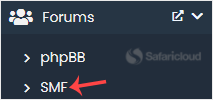 4. On the left side, locate the Forums category. Click on it and then on the SMF link that appears.