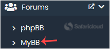 4. On the left side, locate the Forums category. Click on it and then on the MyBB link that appears.