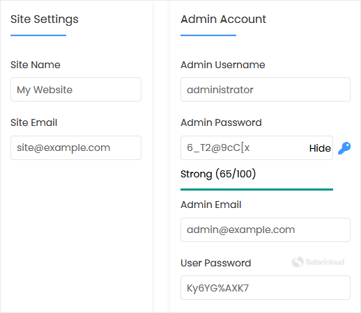 - Site Email: Your e-mail address.