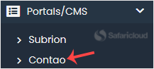 4. On the left side, locate the Portal/CMS category. Click on it and then on the Contao link that appears.